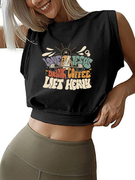 LOVE JESUS DRINK COFFEE LIFT HEAVY SLEEVELESS CROP TOPS