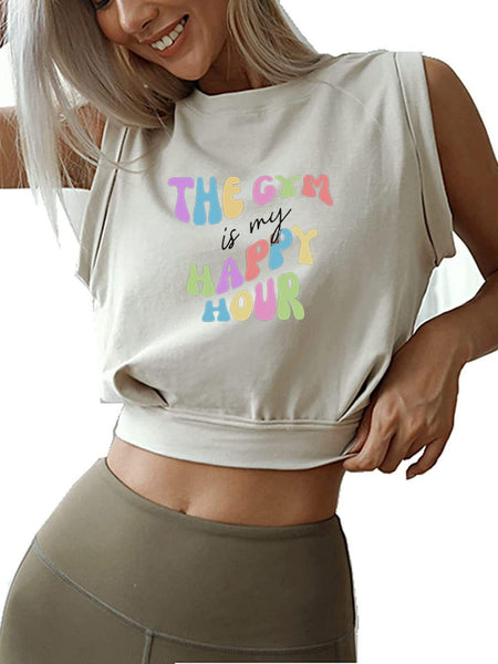 THE GYM IS MY HAPPY HOUR SLEEVELESS CROP TOPS
