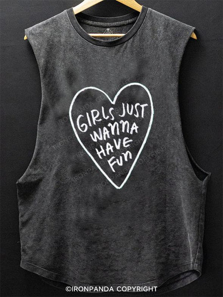 GIRLS JUST WANNA HAVE FUN SCOOP BOTTOM COTTON TANK
