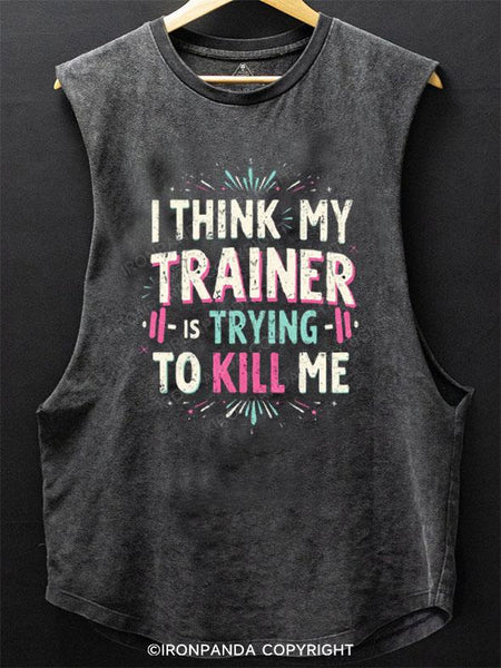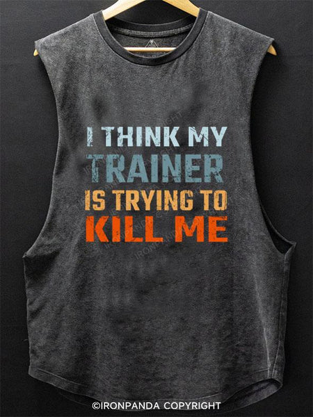 I THINK MY TRAINER IS TRYING TO KILL ME SCOOP BOTTOM COTTON TANK