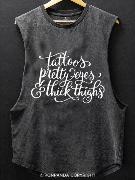TATTOOS PRETTY EYES & THICK THIGHS SCOOP BOTTOM COTTON TANK