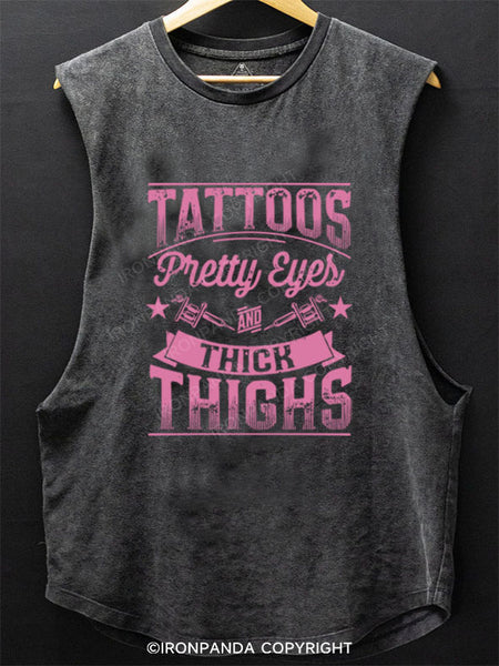 TATTOOS PRETTY EYES AND THICK THIGHS SCOOP BOTTOM COTTON TANK