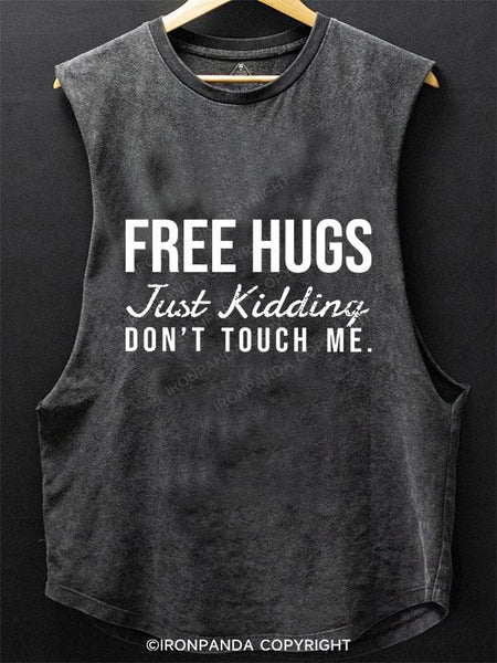 FREE HUGS JUST KIDDING DONT TOUCH ME SCOOP BOTTOM COTTON TANK