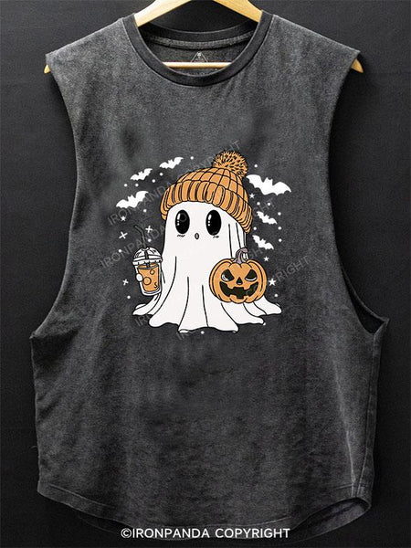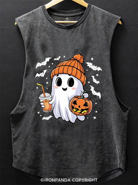 GHOST WITH ICED COFFEE SCOOP BOTTOM COTTON TANK