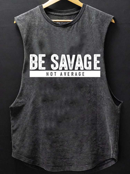 BE SAVAGE NOT AVERAGE SCOOP BOTTOM COTTON TANK