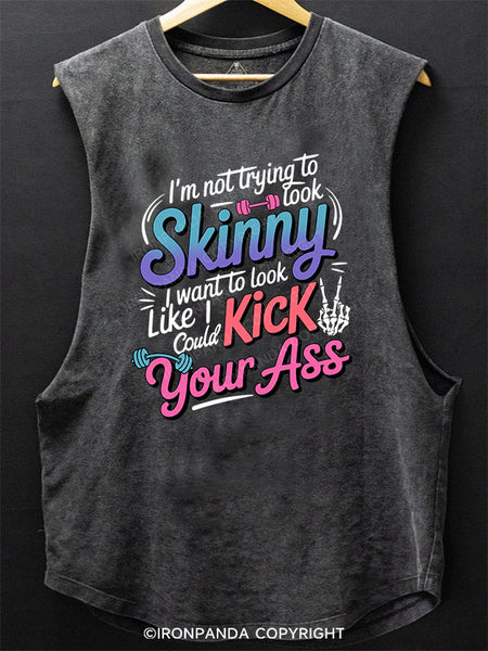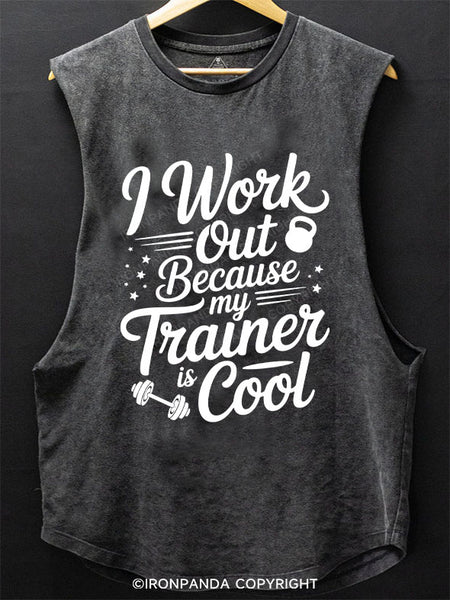 I work out because my trainer is cool SCOOP BOTTOM COTTON TANK