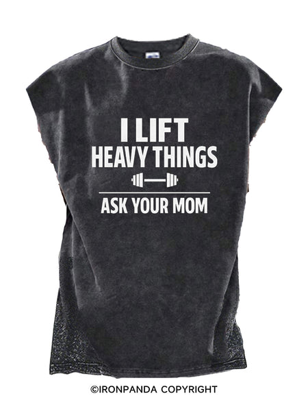 I LIFT HEAVY THINGS — ASK YOUR MOM Cut Off Tank