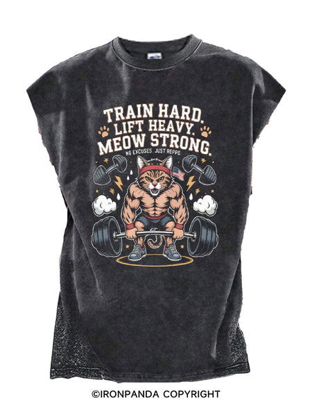 TRAIN HARD LIFT HEAVY MEOW STRONG Cut Off Tank