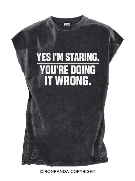 YES I’M STARING YOU’RE DOING IT WRONG Cut Off Tank