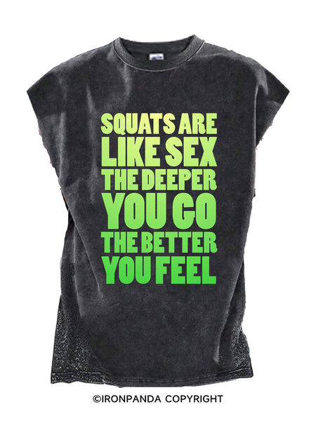 SQUATS ARE LIKE SEX THE DEEPER YOU GO THE BETTER YOU FEEL Cut Off Tank