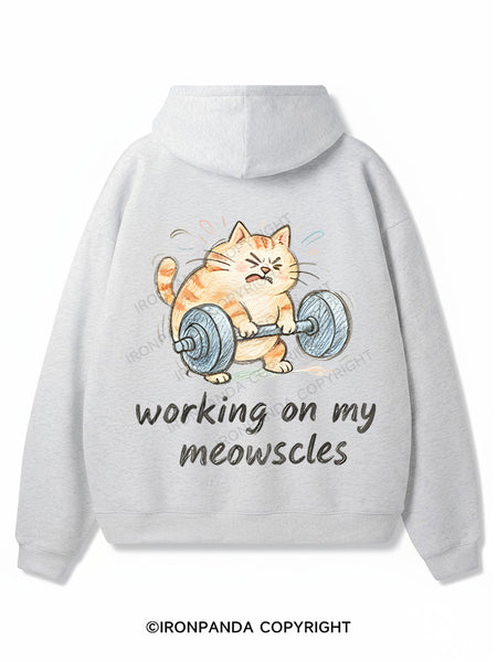 WORKING ON MY MEOWSCLES Premium Fleece Gym Hoodie
