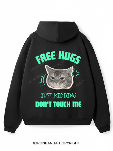 FREE HUGS JUST KIDDING DON'T TOUCH ME Premium Fleece Gym Hoodie