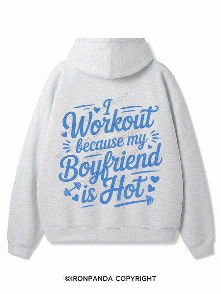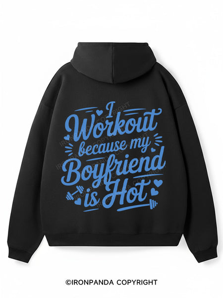 I WORKOUT BECAUSE MY BOYFRIEND IS HOT Premium Fleece Gym Hoodie
