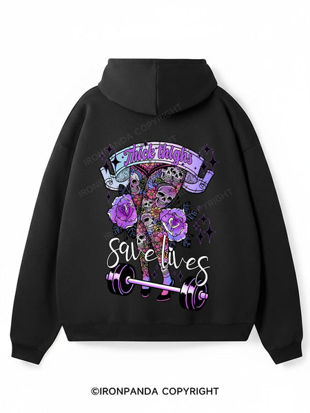 THICK THIGHS SAVE LIVES Premium Fleece Gym Hoodie