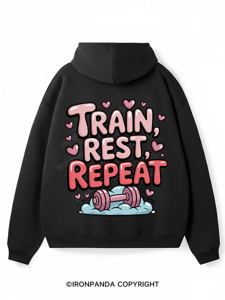 TRAIN, REST, REPEAT Premium Fleece Gym Hoodie