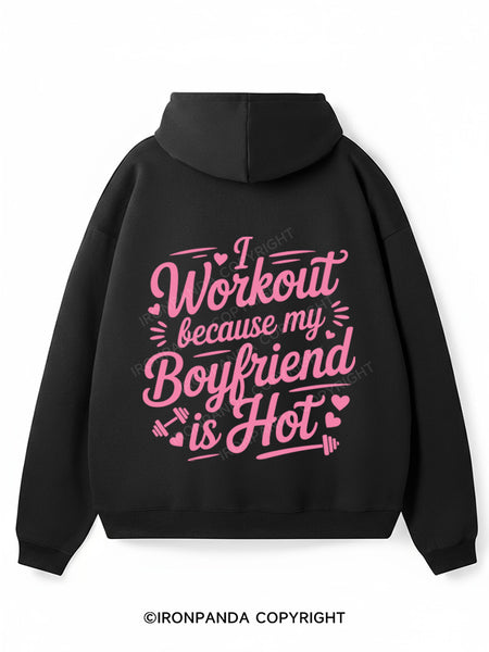 I WORKOUT BECAUSE MY BOYFRIEND IS HOT Premium Fleece Gym Hoodie