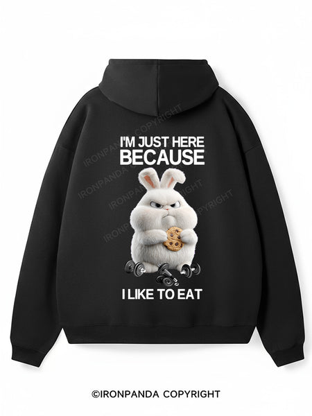 I'M JUST HERE BECAUSE I LIKE TO EAT Premium Fleece Gym Hoodie