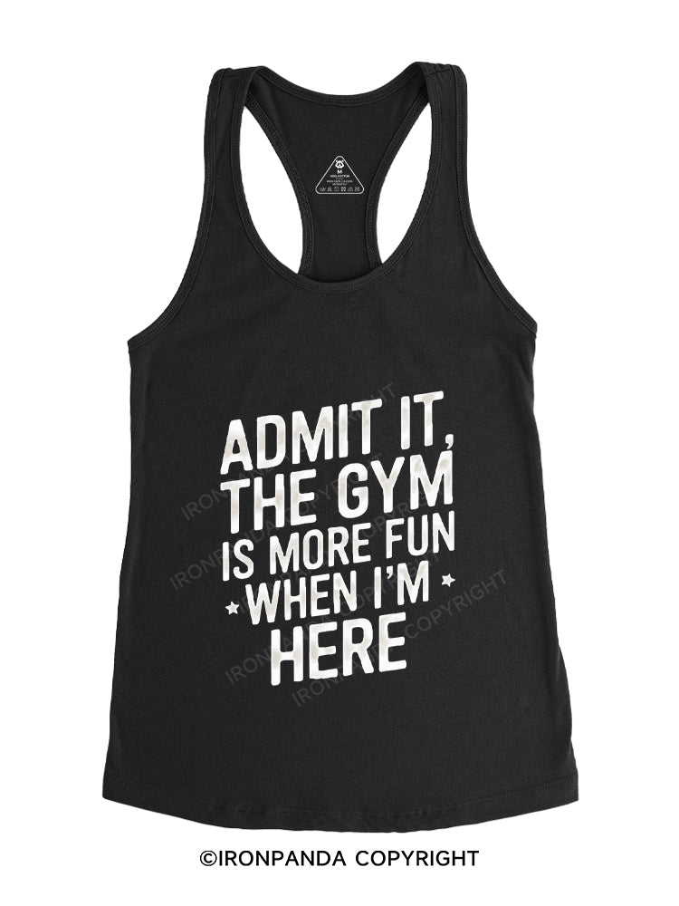 ADMIT IT, THE GYM IS MORE FUN WHEN I'M HERE Gym Racerback Tank