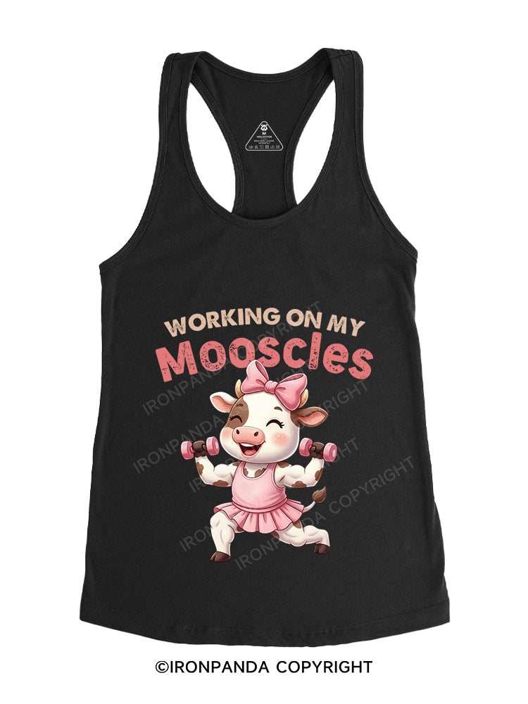 WORKING ON MY MOOSCLES Gym Racerback Tank