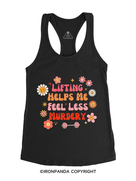 Lifting Helps Me Feel Less Murdery Gym Racerback Tank