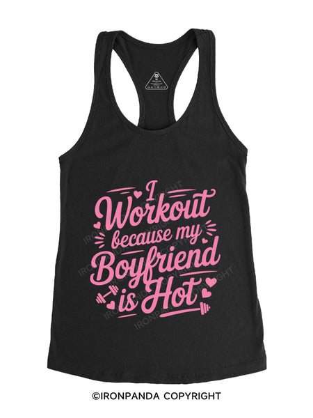 I WORKOUT BECAUSE MY BOYFRIEND IS HOT Gym Racerback Tank