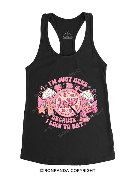 I'M JUST HERE BECAUSE I LIKE TO EAT Gym Racerback Tank
