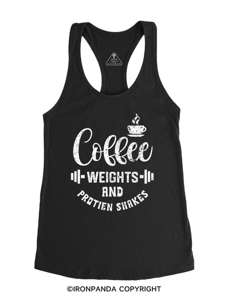 Coffee Weights and Protein Shakes Gym Racerback Tank