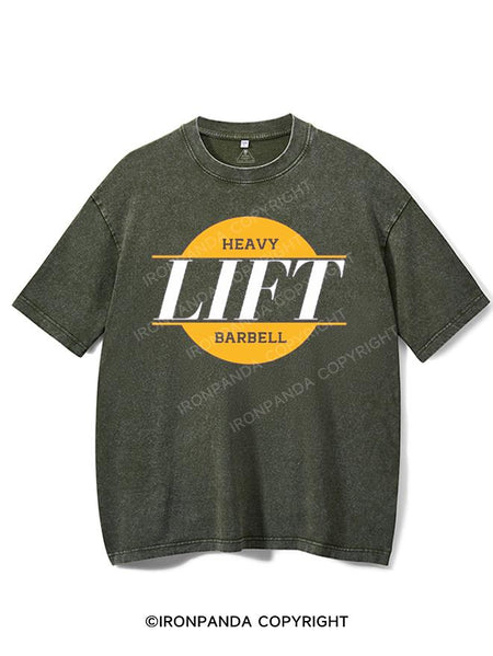 LIFT HEAVY BARBELL Washed Gym Shirt