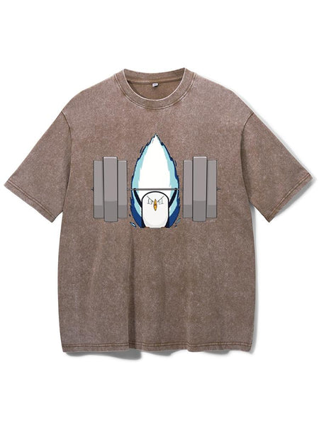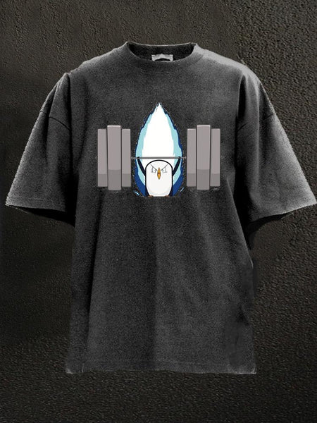 Penguin doing bodybuilding Washed Gym Shirt