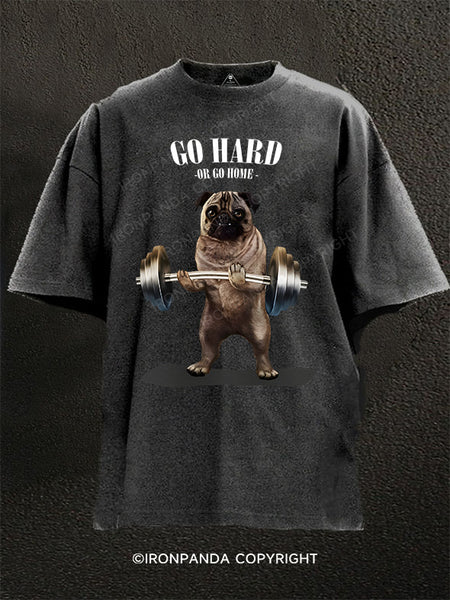 Pug Weightlifting Go Hard Or Go Home Washed Gym Shirt