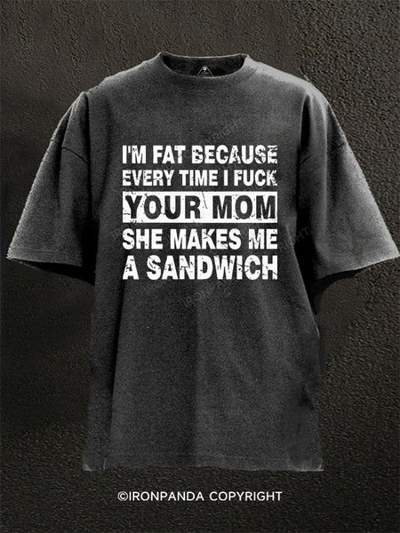 I'M FAT BECAUSE EVERY TIME I FUCK YOUR MOM SHE MAKES ME A SANDWICH Washed Gym Shirt