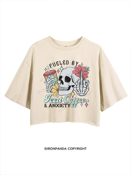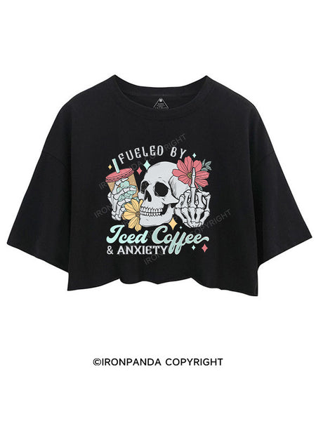 FUELED BY ICED COFFEE AND ANXIETY CROP TOPS