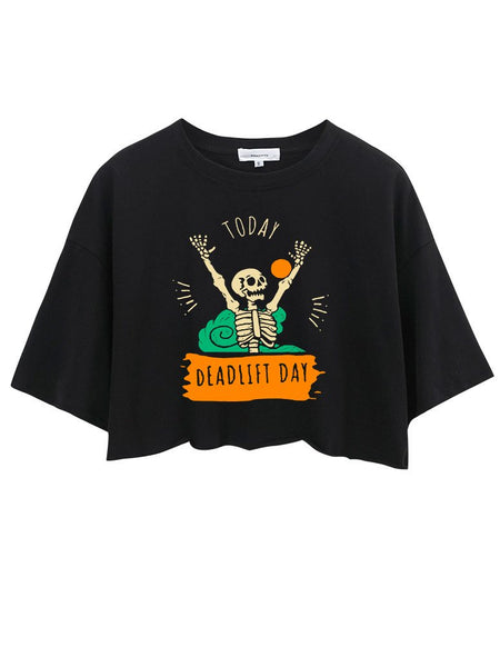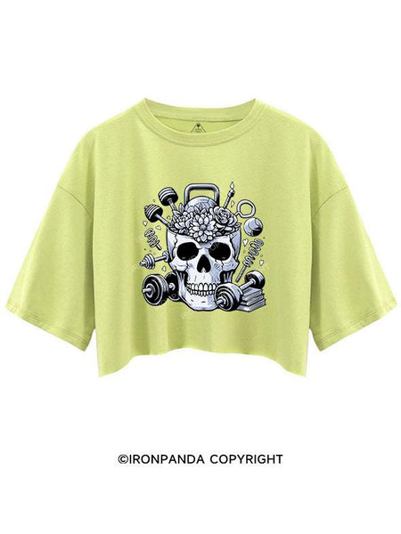 SKELETON LIFTING FLOWERS BOOKS CROP TOPS