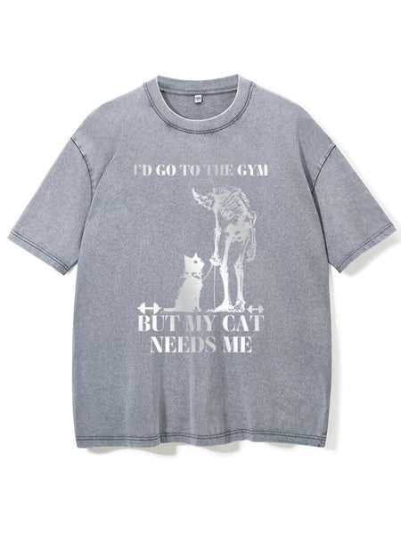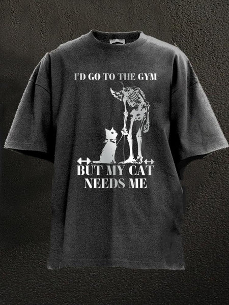 i'd go to the gym but my cat needs me Washed Gym Shirt