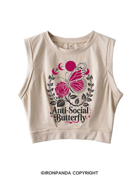 ANTI-SOCIAL BUTTERFLY SLEEVELESS CROP TOPS