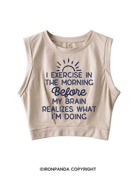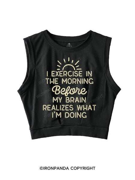 I EXERCISE IN THE MORNING SLEEVELESS CROP TOPS
