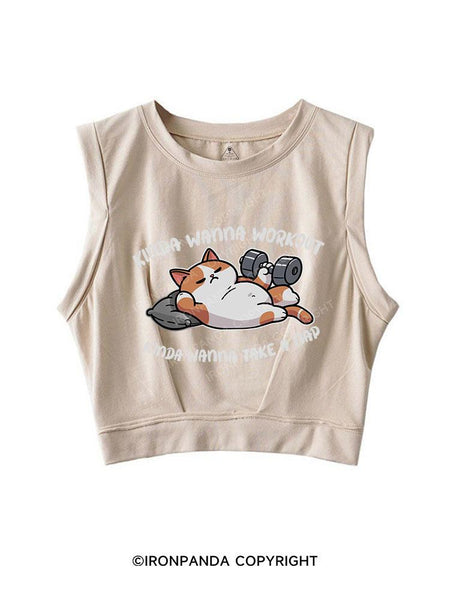 KINDA WANNA WORKOUT KINDA WANNA TAKE A NAP SLEEVELESS CROP TOPS