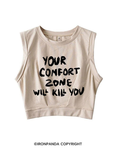 YOUR COMFORT ZONE WILL KILL YOU SLEEVELESS CROP TOPS