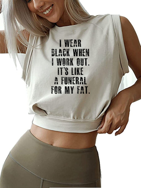I WEAR BLACK WHEN I WORK OUT SLEEVELESS CROP TOPS