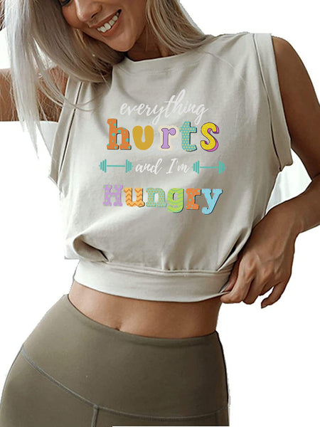 EVERYTHING HURTS AND I'M HUNGRY Sleeveless Crop Tops