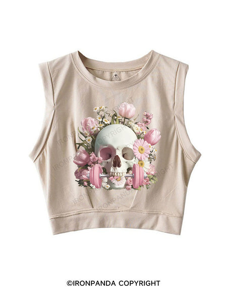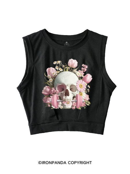 BARBELL SKULL SLEEVELESS CROP TOPS