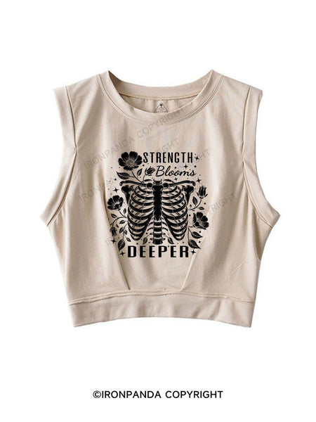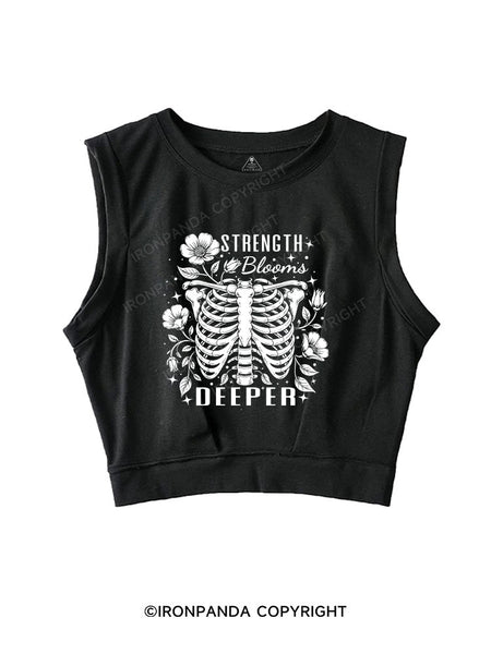STRENGTH BLOOMS DEEPER SLEEVELESS CROP TOPS