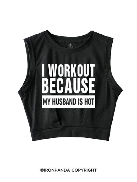 I WORKOUT BECAUSE MY HUSBAND IS HOT SLEEVELESS CROP TOPS
