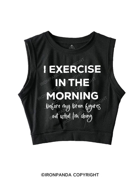 I Exercise in the morning SLEEVELESS CROP TOPS