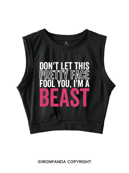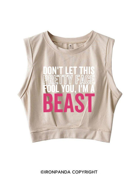 DON'T LET THIS PRETTY FACE FOOL YOU, I'M A BEAST SLEEVELESS CROP TOPS