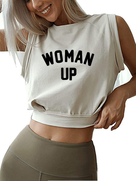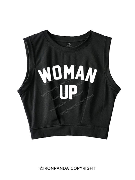 WOMAN UP SLEEVELESS CROP TOPS