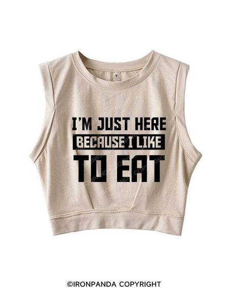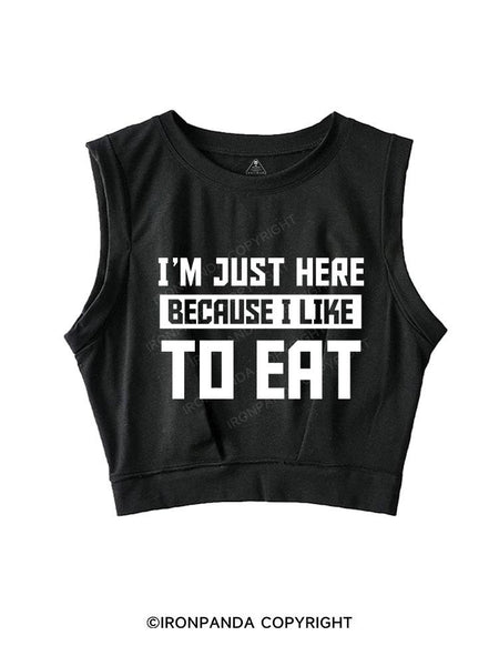 I ' M JUST HERE BECAUSE I LIKE TO EAT SLEEVELESS CROP TOPS
