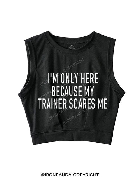 I'm Only Here Because My Trainer Scares Me SLEEVELESS CROP TOPS