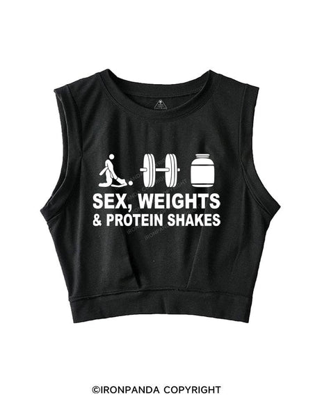 SEX WEIGHTS & PROTEIN SHAKES SLEEVELESS CROP TOPS