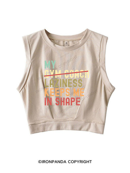 MY LAZINESS KEEPS ME IN SHAPE SLEEVELESS CROP TOPS